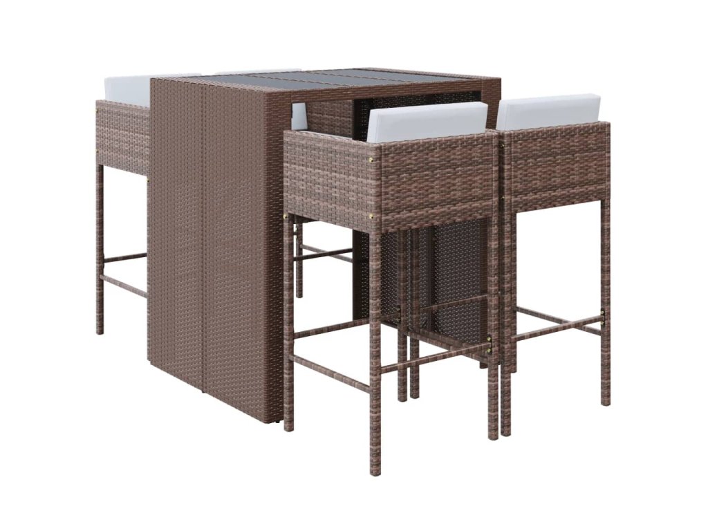 5dílný zahradní barový set s poduškami hnědý polyratan 3200669