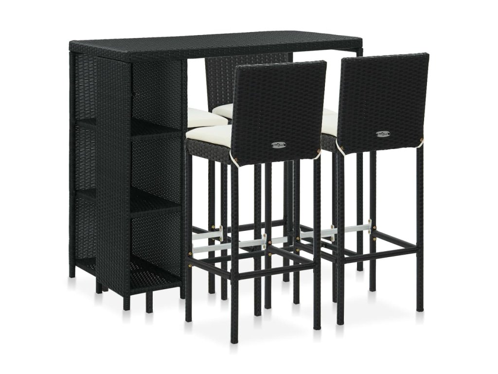5dílný zahradní barový set s poduškami polyratan černý 3064918