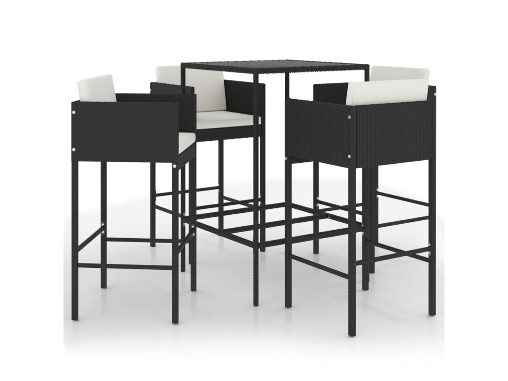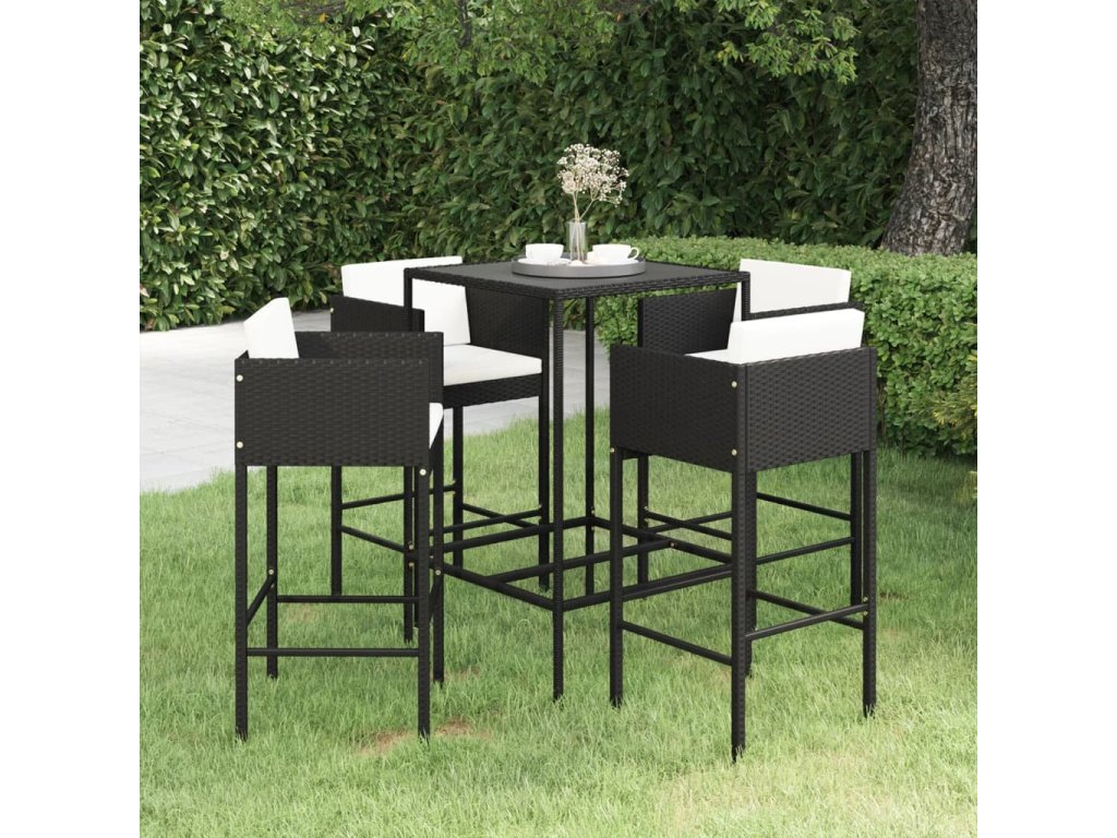 5dílný zahradní barový set s poduškami polyratan černý 3094790