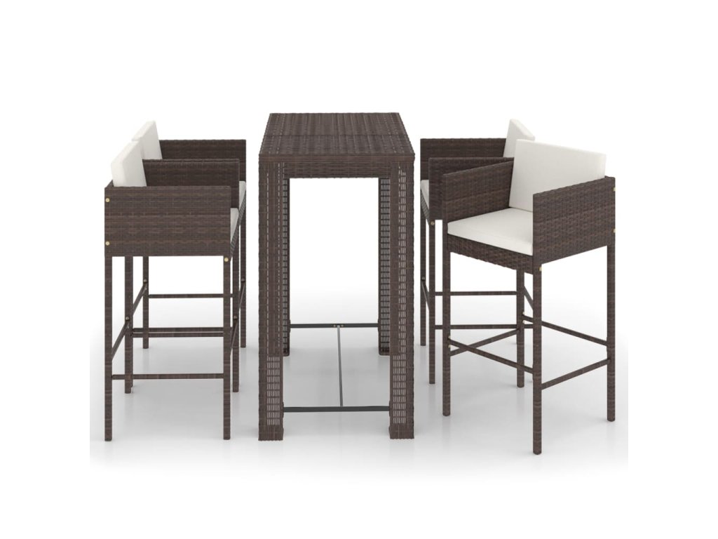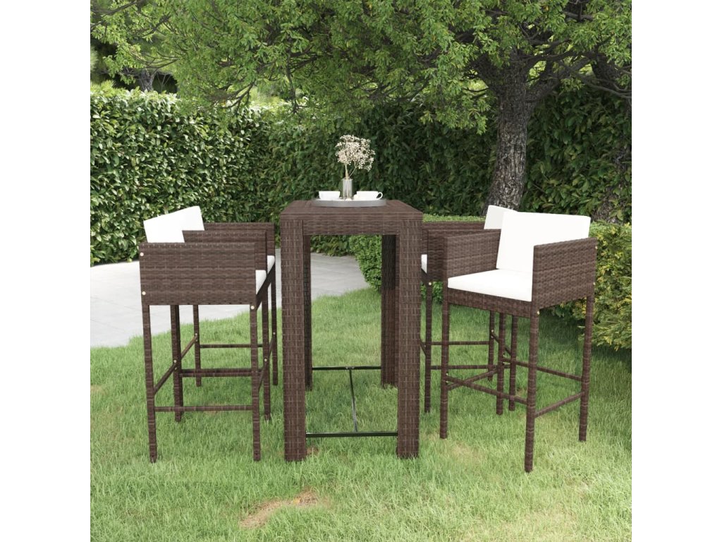 5dílný zahradní barový set s poduškami polyratan hnědý 3094783