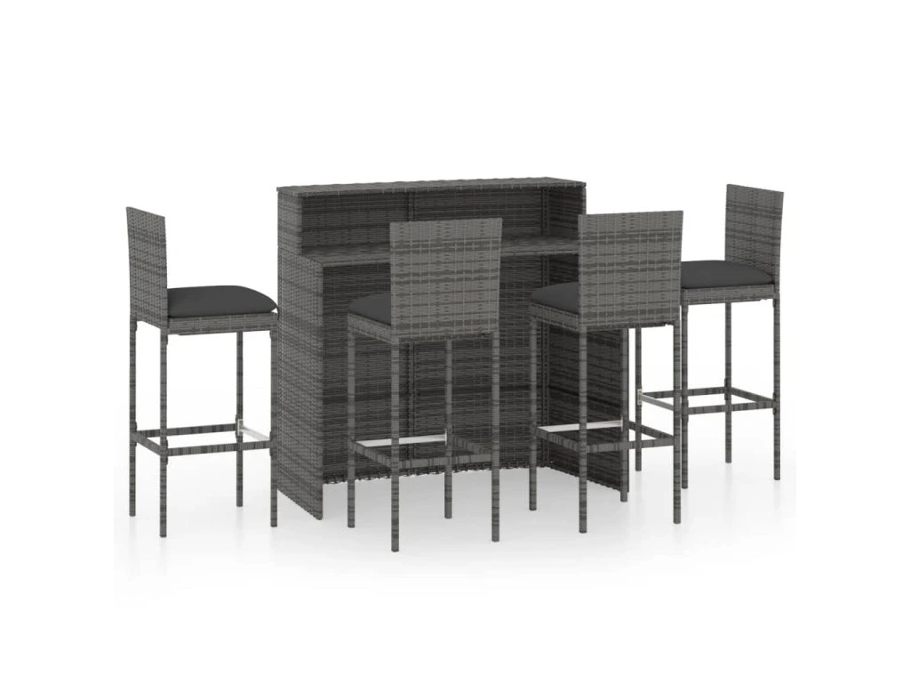 5dílný zahradní barový set s poduškami šedý 3064884