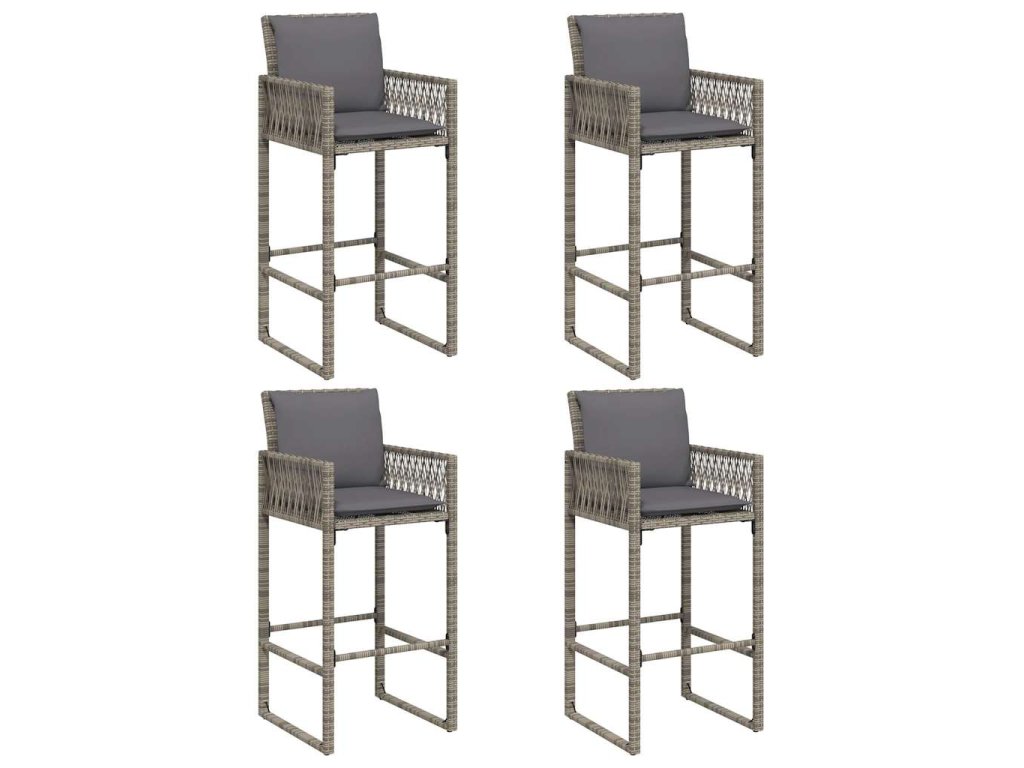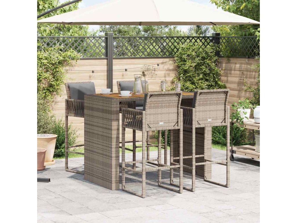 5dílný zahradní barový set s poduškami šedý polyratan akácie 3328900