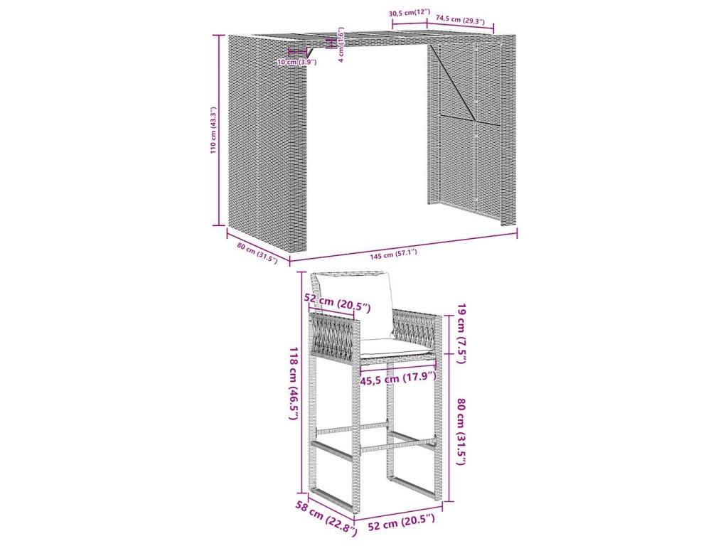 Tento módní zahradní barový set, který kombinuje styl a funkčnost, se jistě stane středem pozornosti vaší zahrady, terasy a jakéhokoli jiného obytného prostoru.