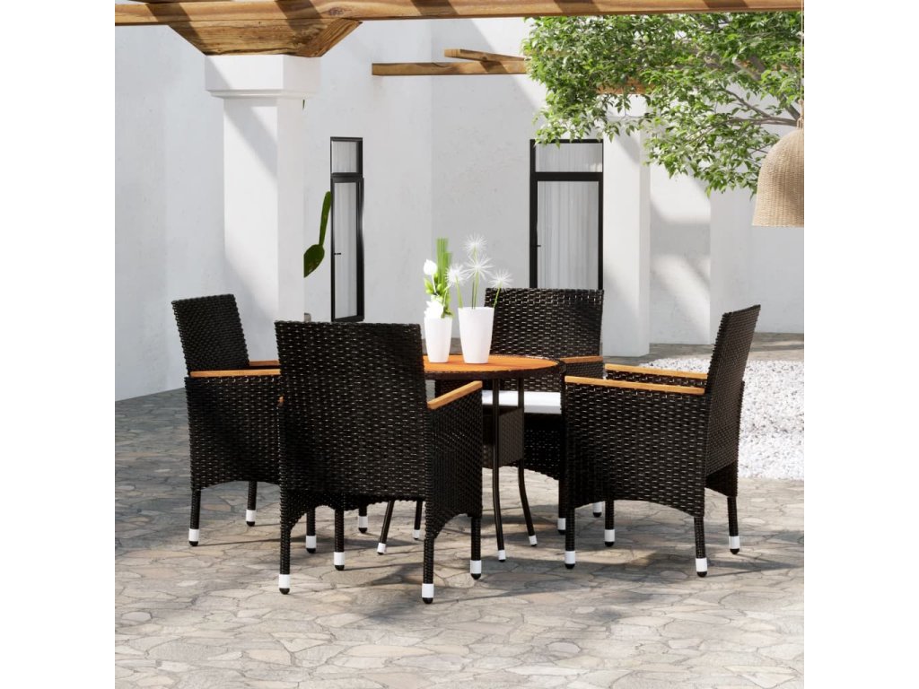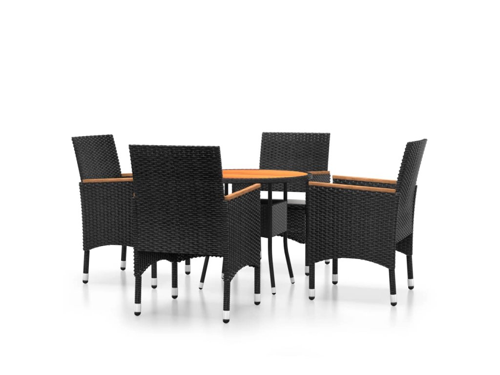 5dílný zahradní bistro set polyratan a masivní dřevo černý 3095909