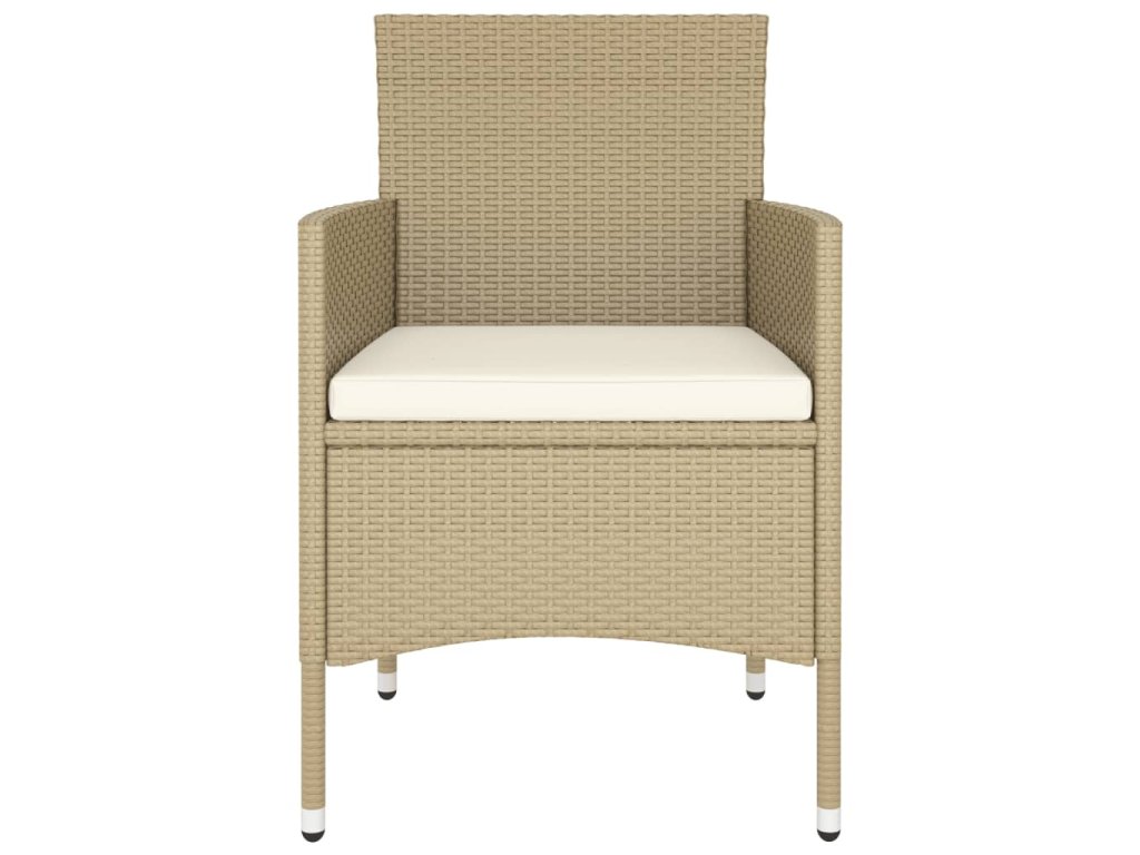 Stůl a židle mají práškově lakovaný ocelový rám opletený PE ratanem, který skvěle odolává povětrnostním vlivům i UV záření, jsou tedy stabilní a mají dlouhou životnost. Židle jsou navrženy se zaobleným opěradlem a područkami pro maximální pohodlí. Součástí balení jsou také podušky, které vám poskytnou ještě větší komfort. Potah je navíc vybaven zipem, takže se dá jednoduše sejmout a vyprat. Stolní deska je zhotovená ze zesíleného tvrzeného skla zasazeného v pevném rámu, snadno se tedy čistí a udržuje. Dvě podnožky zároveň slouží jako dodatečná místa k sezení. Nábytek se vyznačuje lehkou konstrukcí, všechny kusy lze tudíž bez námahy přemisťovat, přestavovat a přepravovat.
