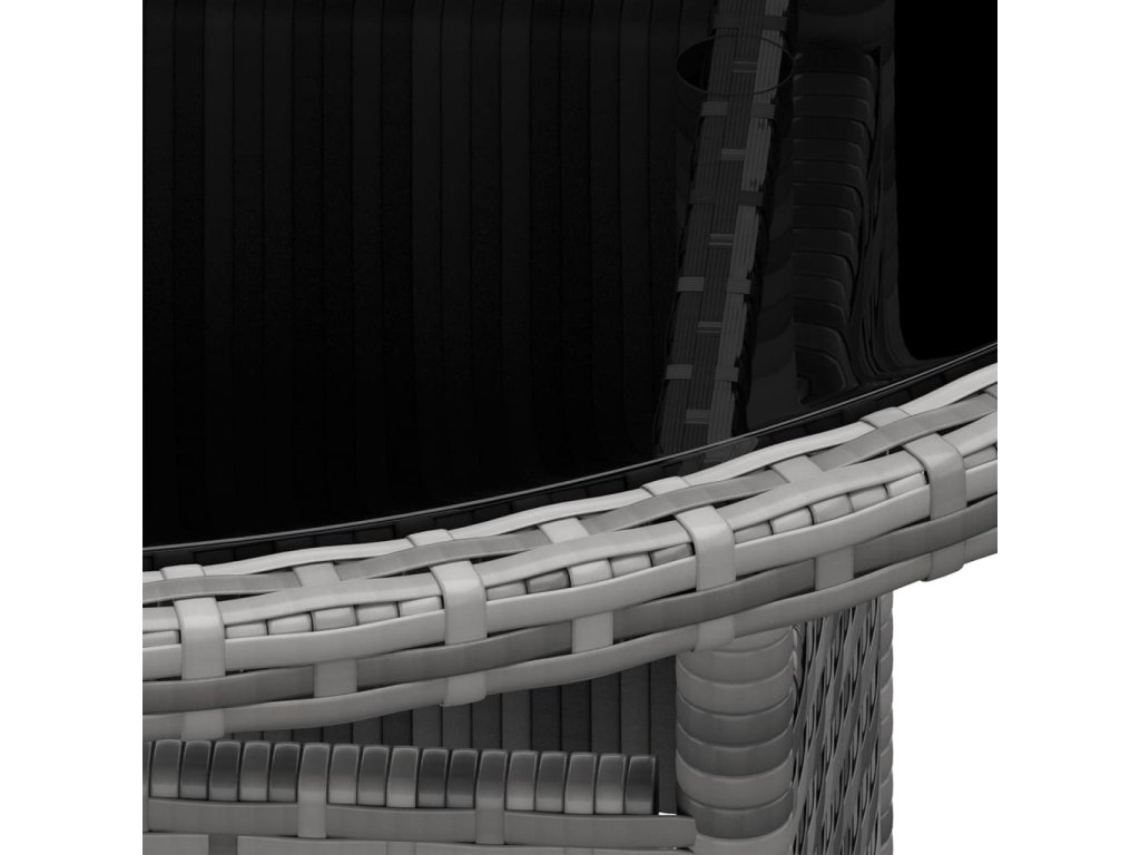 - Materiál: práškově lakovaná ocel, polyratan, tvrzené sklo