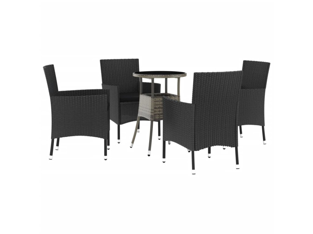 5dílný zahradní bistro set s poduškami černý polyratan 3187427