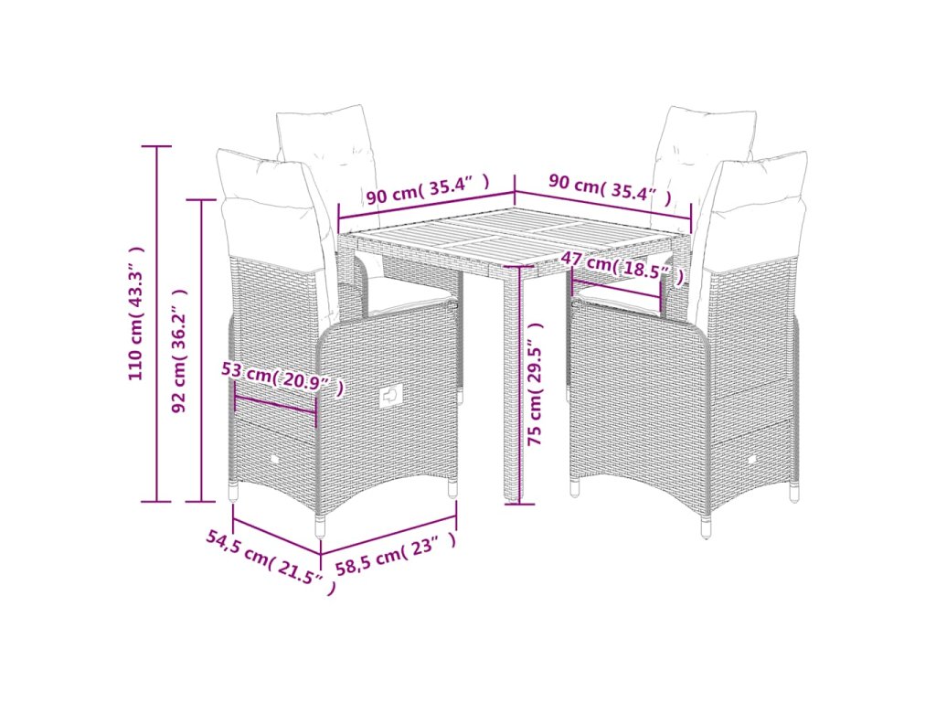 - Materiál: PE ratan, ocel, masivní akáciové dřevo s olejovou povrchovou úpravou