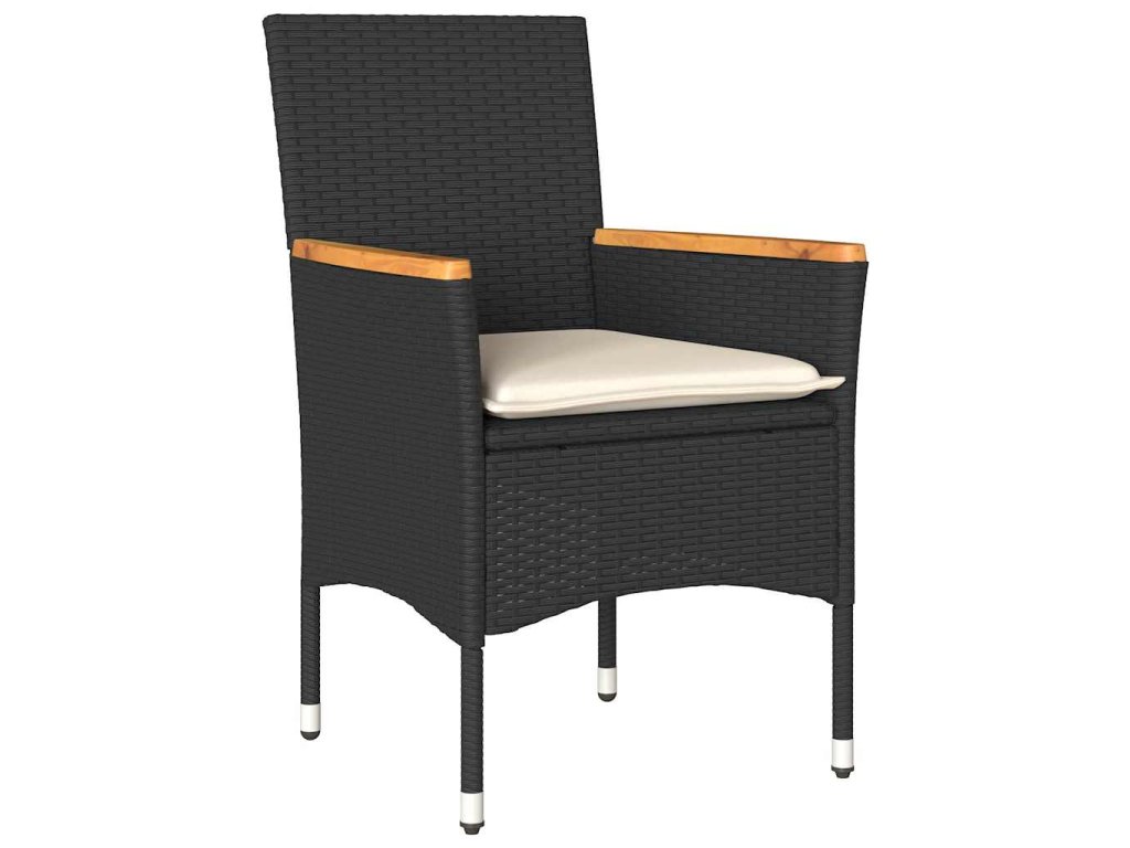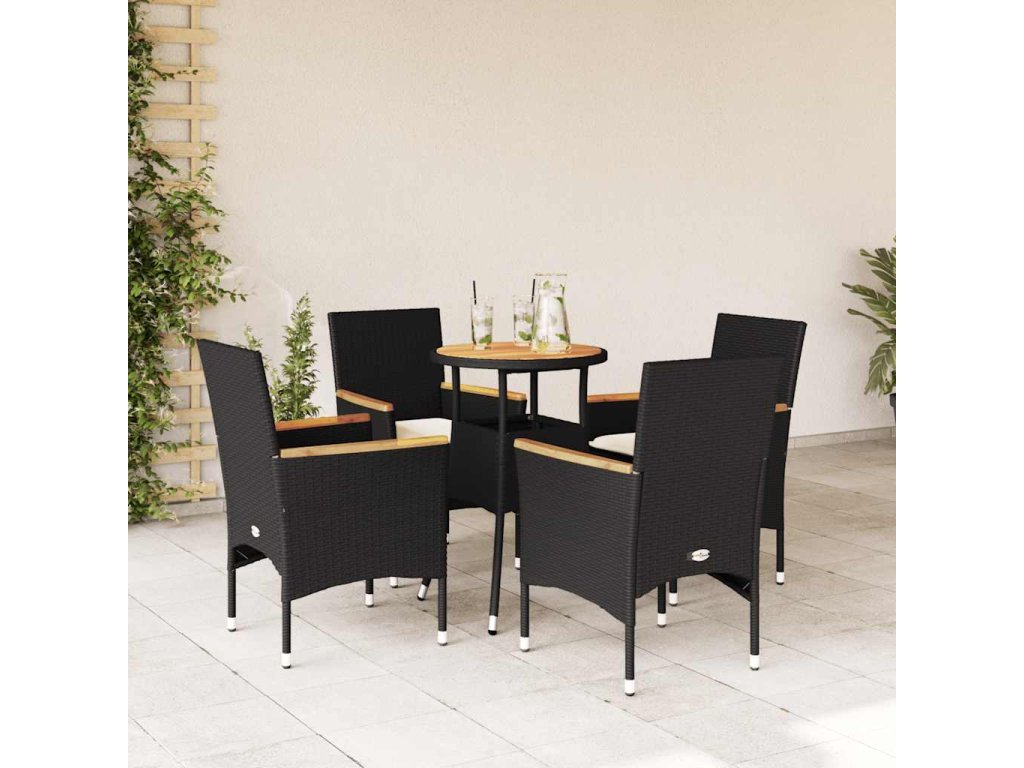 5dílný zahradní jídelní set a podušky černý polyratan a akácie 3278718
