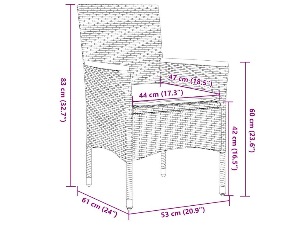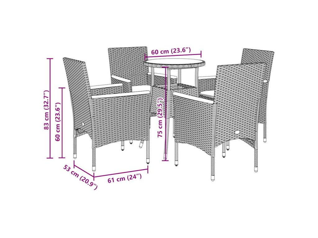 - Materiál: PE ratan, práškově lakovaná ocel, masivní akáciové dřevo s olejovou povrchovou úpravou