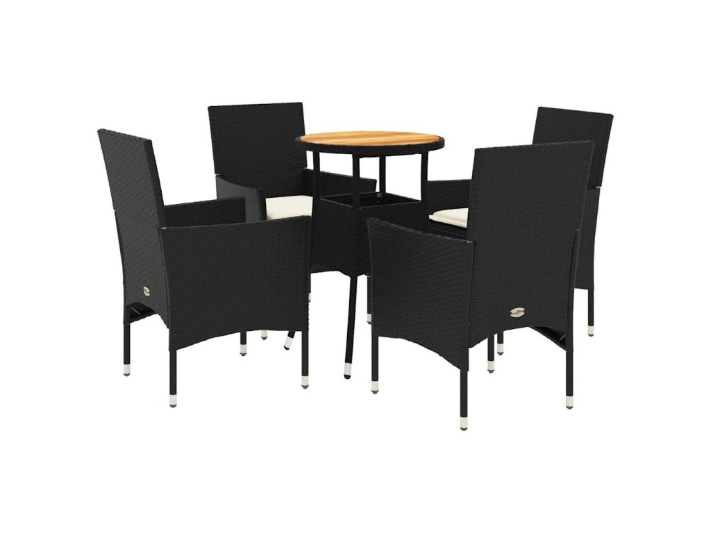 5dílný zahradní jídelní set a podušky černý polyratan a akácie 3278728