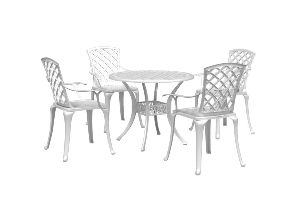 5dílný zahradní jídelní set bílý litý hliník 3216336