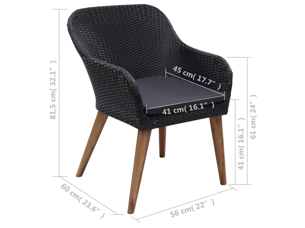 - Materiál: PE (polyetylenový) ratan, práškově lakovaná ocel, masivní akáciové dřevo s olejovaným povrchem
