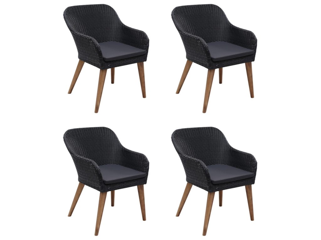 Jídelní stůl je zhotovený z masivního akáciového dřeva s olejovaným povrchem, takže je stabilní, odolný a nenáročný na údržbu. Jídelní židle mají rám z práškově lakované oceli, opletený PE ratanem, který výborně vzdoruje klimatickým vlivům. Dlouho vám proto vydrží a snadno je očistíte. Ergonomický tvar spolu s hustě polstrovanými poduškami vám při sezení zaručí maximální pohodlí. Polyesterové potahy podušek nevyžadují téměř žádnou údržbu a dají se jednoduše stáhnout a oprat.