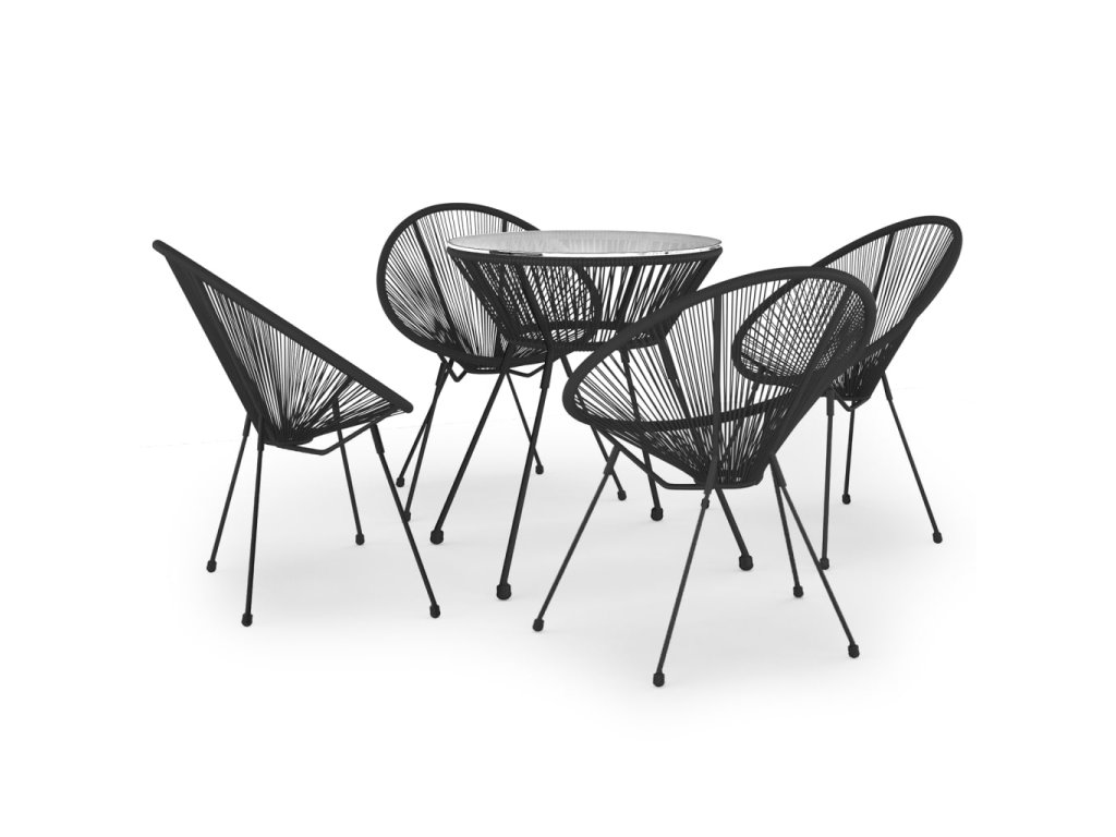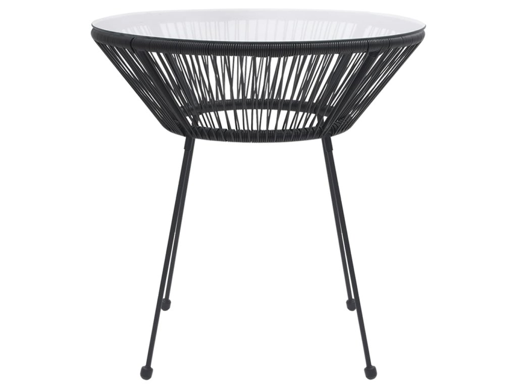 - Materiál: kulatý PVC ratan, tvrzené sklo, práškově lakovaná ocel