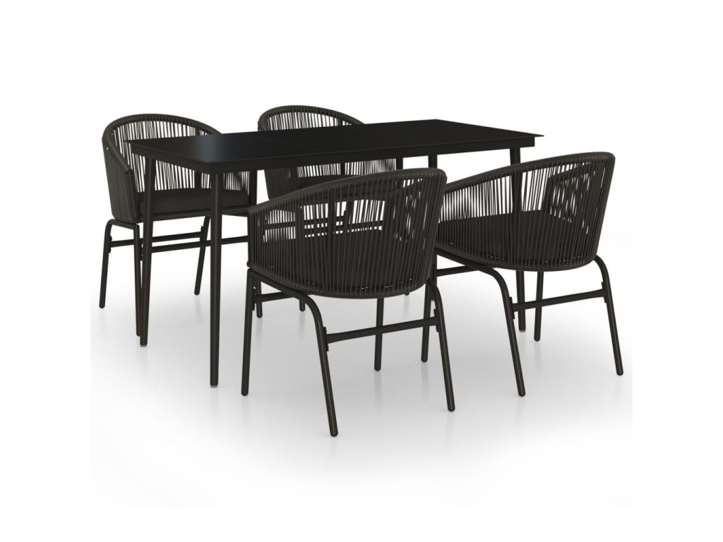 Zahradní jídelní set má práškově lakovaný ocelový rám, takže je robustní a stabilní a ideální pro venkovní použití. Hladká skleněná deska stolu se snadno čistí vlhkým hadříkem a skvěle vám poslouží k podávání jídla a pití nebo k vystavení různých dekorativních předmětů. Židle jsou vyrobené z PVC ratanu, jsou proto odolné a výborně vzdorují UV záření i špatnému počasí. Každá z nich je navíc opatřená odnímatelnou hustě polstrovanou poduškou, a zpříjemní vám tak váš odpočinek.