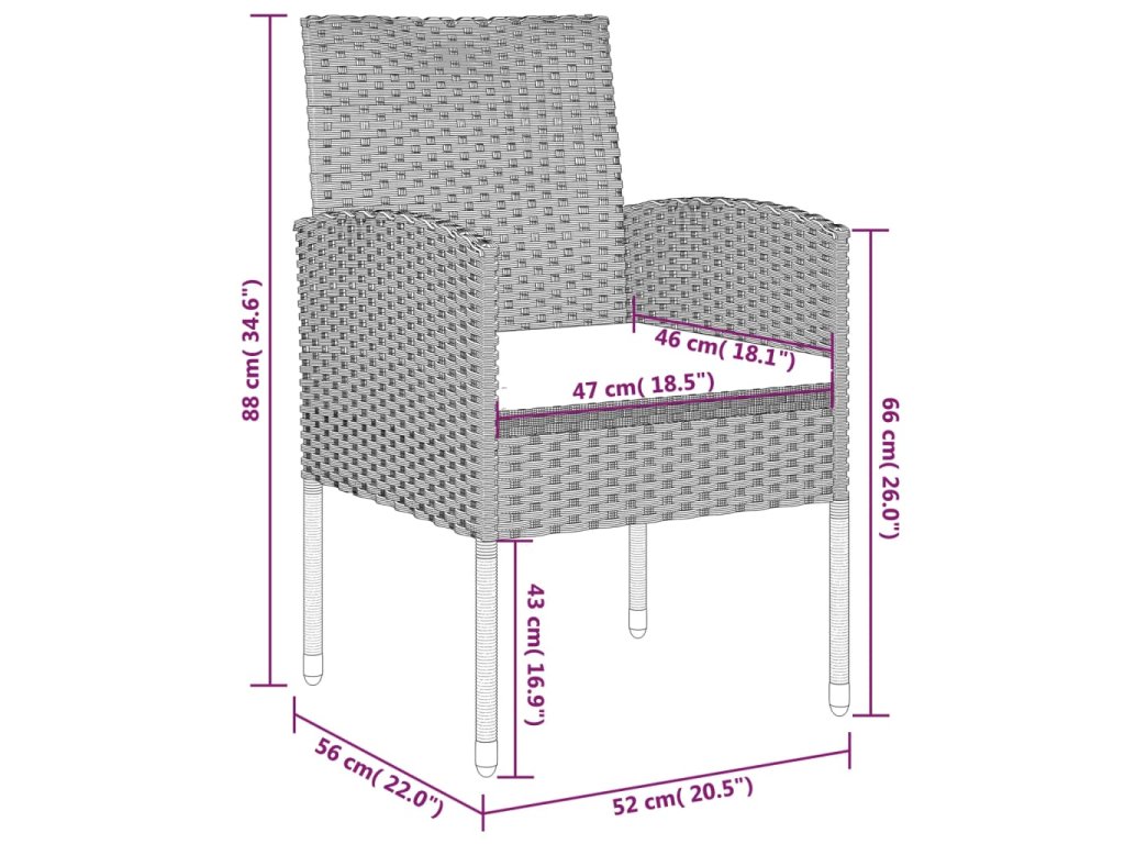 Praktická zahradní jídelní sestava má ocelový rám, takže je pevná a odolná. Zahradní židle jsou vyrobené z voděodolného PE ratanu, jsou tedy nenáročné na údržbu a ideální pro venkovní použití. Hladká skleněná stolní deska, kterou snadno očistíte vlhkým hadříkem, vám výborně poslouží k podávání jídla a pití nebo k vystavení dekorativních předmětů. Tlusté podušky jsou odnímatelné a mimořádně pohodlné.