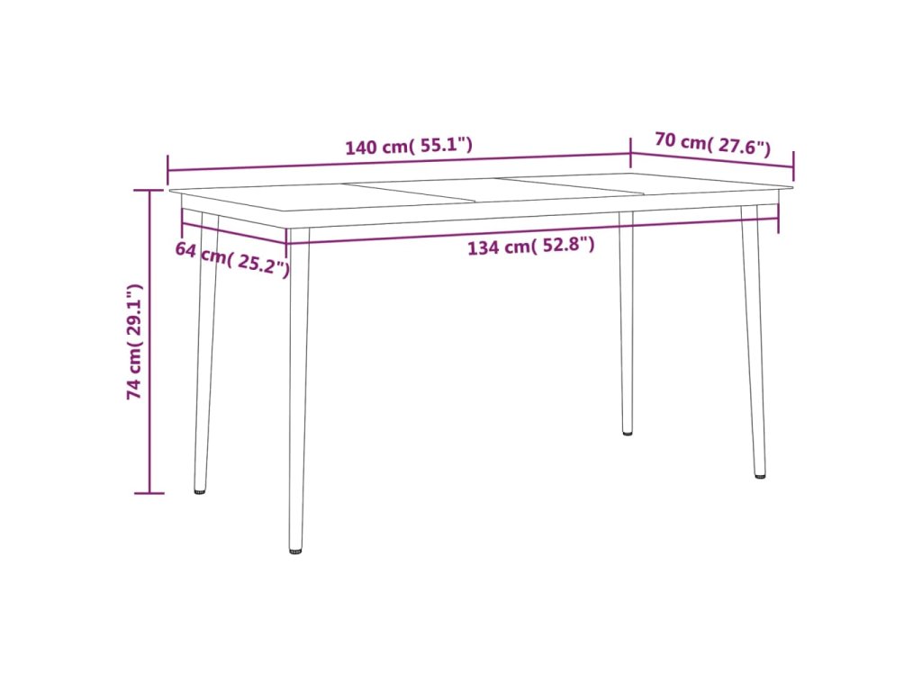 - Rozměry: 140 x 70 x 74 cm (D x Š x V)