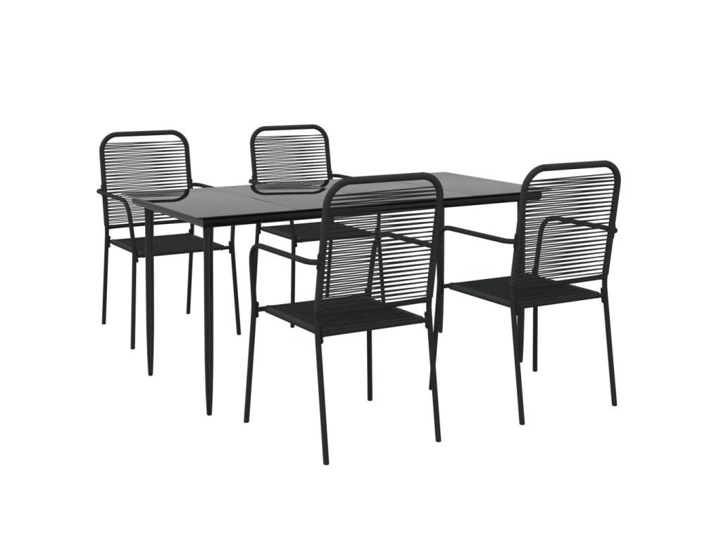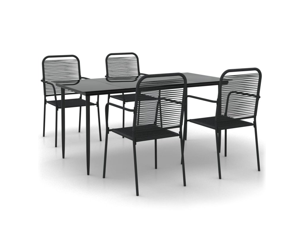 5dílný zahradní jídelní set černý bavlněné lano a ocel 3156540