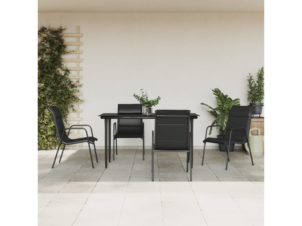 5dílný zahradní jídelní set černý ocel a textilen 3200704