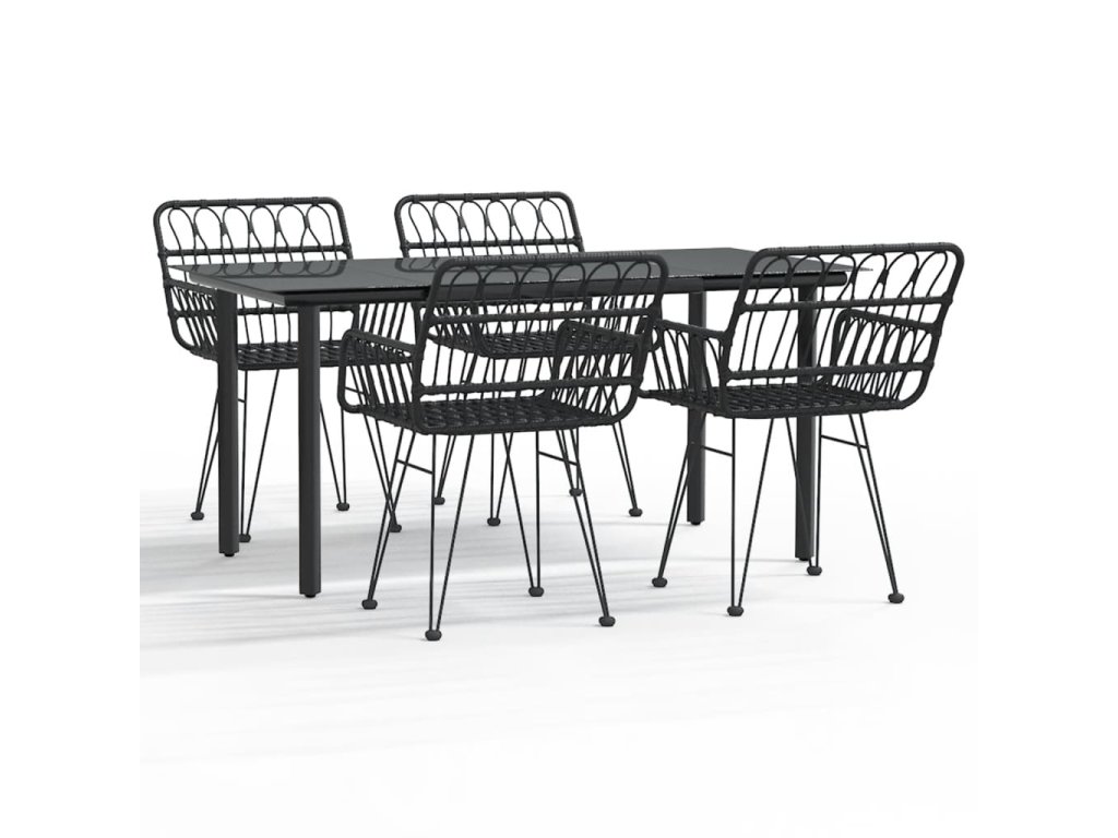 5dílný zahradní jídelní set černý polyratan 3157869