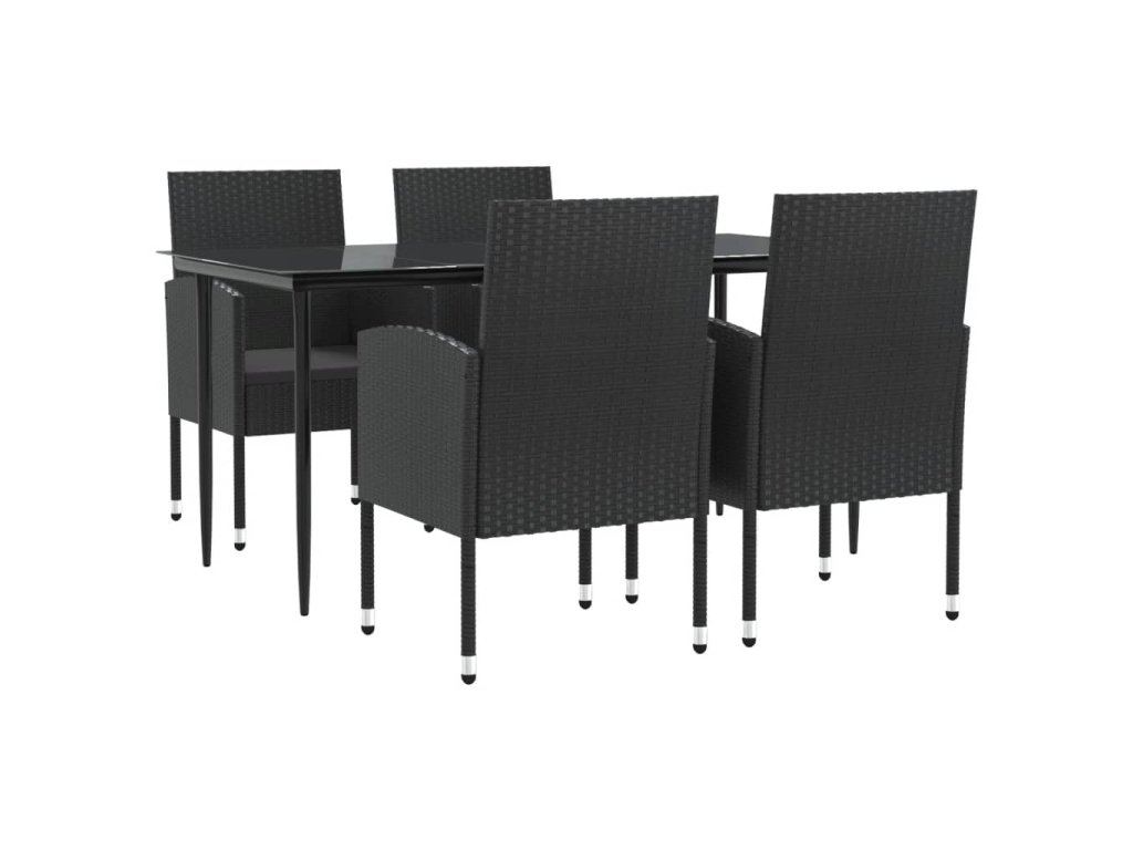 5dílný zahradní jídelní set černý polyratan a ocel 3203340