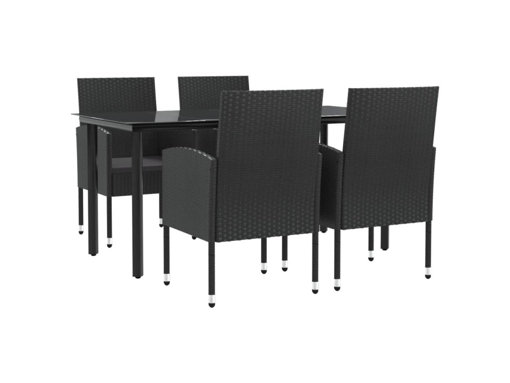 5dílný zahradní jídelní set černý polyratan a ocel 3203348