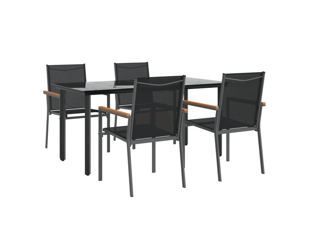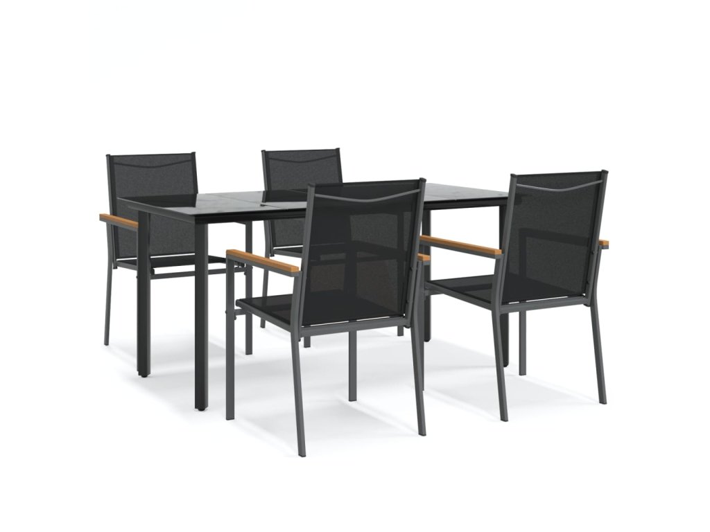 5dílný zahradní jídelní set černý textilen a ocel 3187045