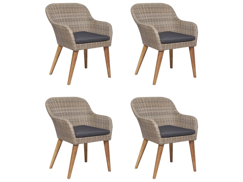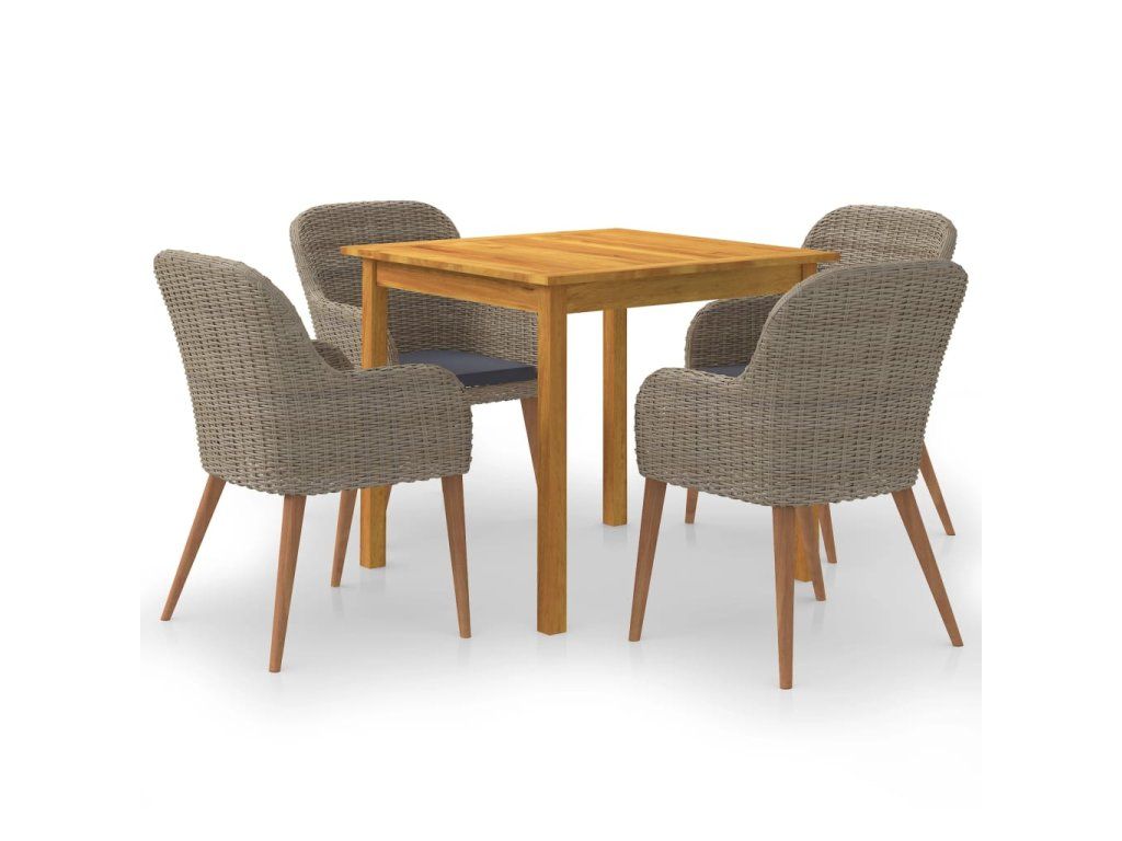 Jídelní stůl je zhotovený z masivního akáciového dřeva s olejovaným povrchem, takže je stabilní, odolný a nenáročný na údržbu. Jídelní židle mají rám z práškově lakované oceli, opletený PE ratanem, který výborně vzdoruje klimatickým vlivům. Dlouho vám proto vydrží a snadno je očistíte. Ergonomický tvar spolu s hustě polstrovanými poduškami vám při sezení zaručí maximální pohodlí. Polyesterové potahy podušek nevyžadují téměř žádnou údržbu a dají se jednoduše stáhnout a oprat.