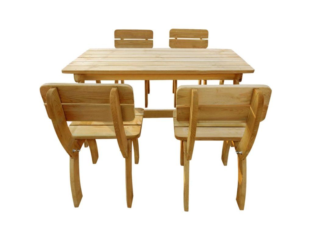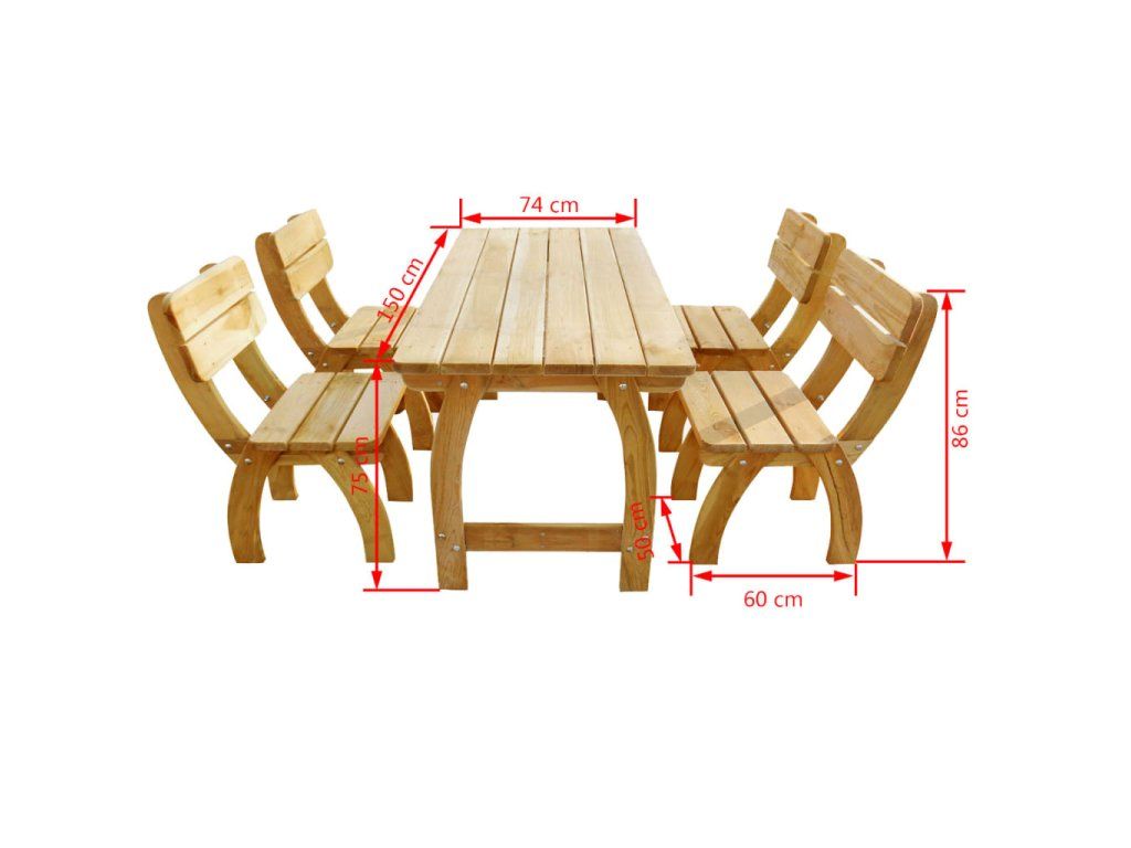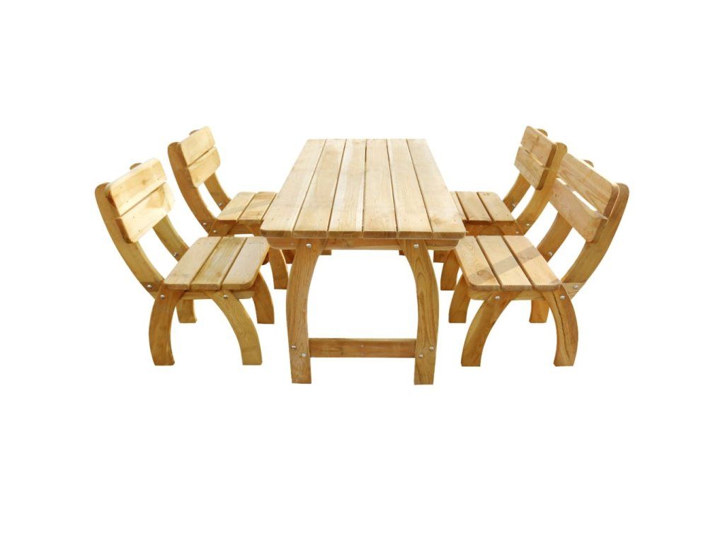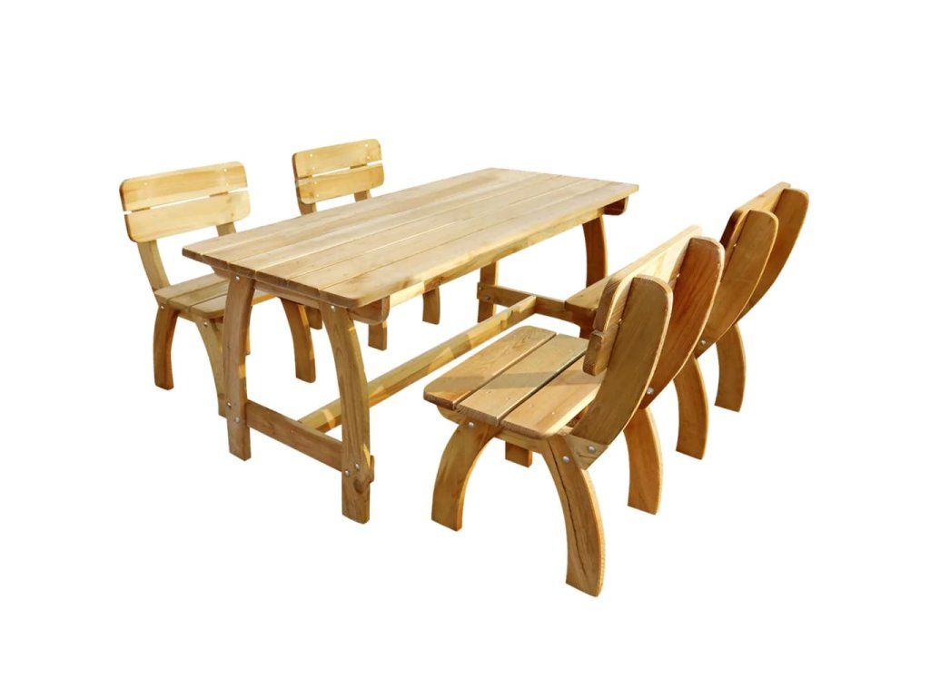 Tento set dřevěného zahradního nábytku je vyroben z vysoce kvalitního borového dřeva se zelenou impregnací, takže je velmi robustní, odolný a rezistentní vůči hnilobě.