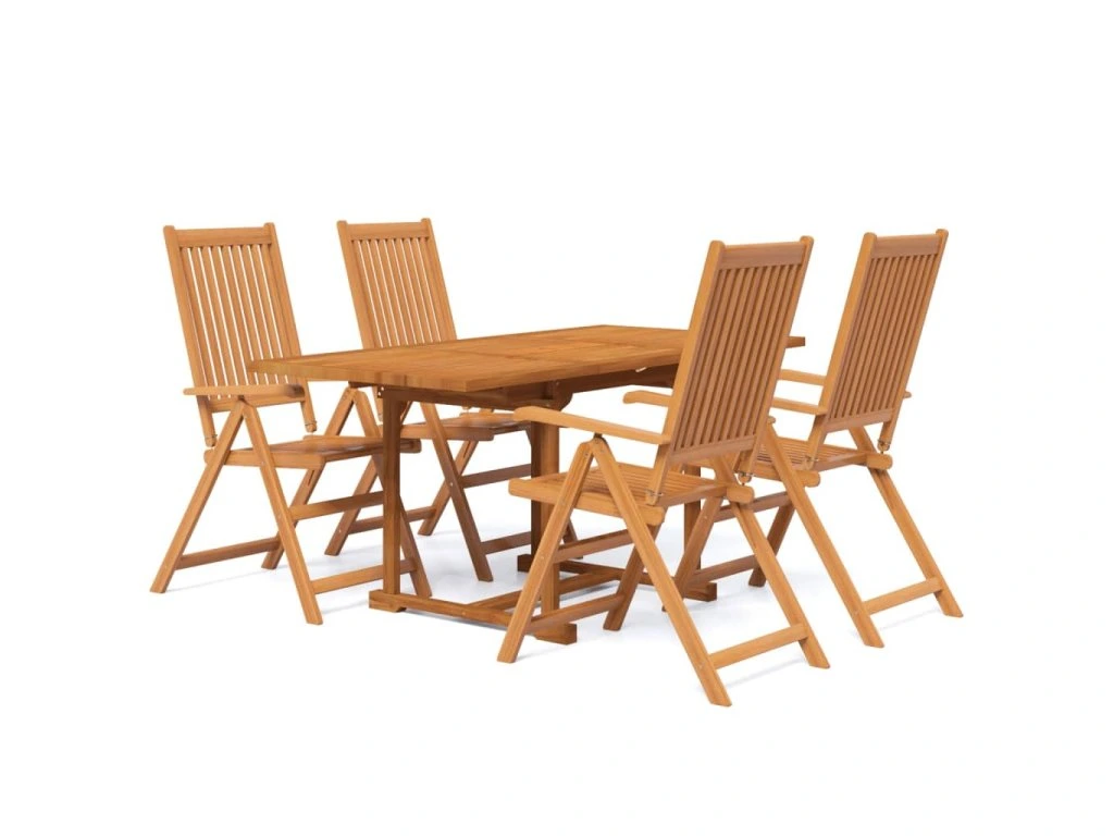 - Prvotřídní materiál: Zahradní jídelní set je vyrobený z masivní akácie, což je tropické tvrdé dřevo, které je odolné a výborně vzdoruje povětrnostním vlivům, takže vám vydrží sloužit po dlouhá léta. Olejovaný povrch se navíc snadno čistí vlhkým hadříkem.