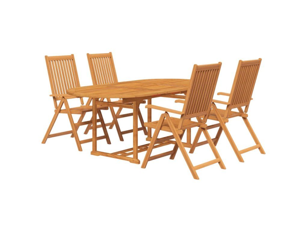 Jídelní sestava je vyrobená z masivní akácie, tropického tvrdého dřeva, které výborně vzdoruje vlivům počasí a vydrží vám sloužit po dlouhá léta. Olejem natřený povrch se snadno čistí navlhčeným hadříkem. Stůl se speciálním designem lze rozšířit až o 200 cm, když potřebujete extra místo. Židli lze upravit do 5 různých poloh, aby se vám pohodlně sedělo za všech okolností. Když je právě nepoužíváte, lze židle složit a ušetřit místo.
