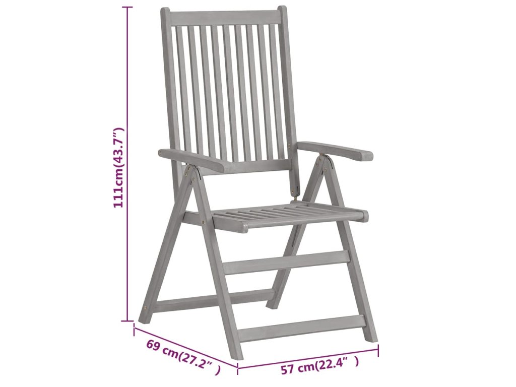 - Nastavitelná a skládací židle: Zahradní židli lze nastavit do 5 poloh, a tak vám při sezení zajistí optimální pohodlí. Pokud jídelní židle právě nepoužíváte, můžete je složit, aby vám zbytečně nepřekážely.