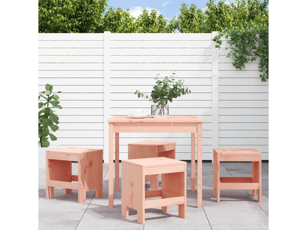 - Masivní dřevo douglasky: Tento jídelní set je vyroben z masivní douglasky. Masivní dřevo douglasky je vysoce odolný druh dřeva, který se výborně hodí pro venkovní použití. Dřevo douglasky je také pevné a vyžaduje minimum údržby i pod vlivem povětrnostních podmínek.