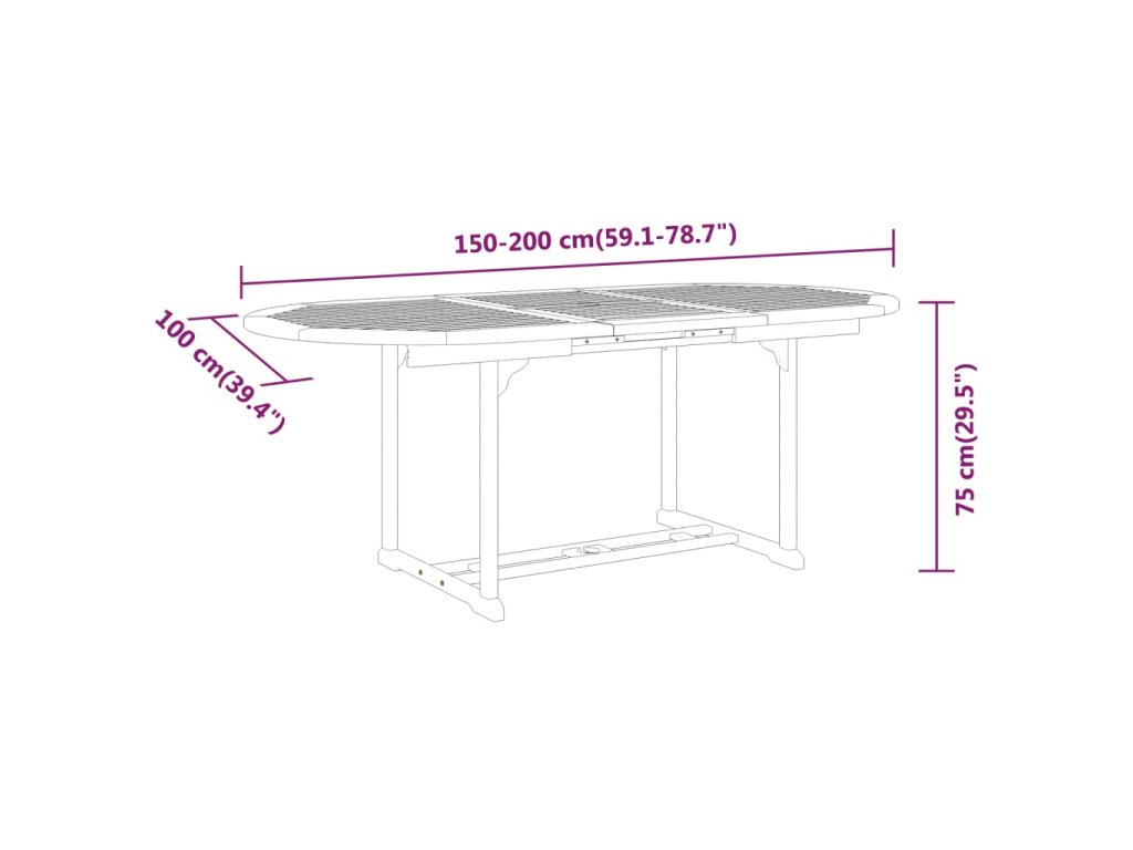 - Rozměry stolu: (150–200) x 100 x 75 cm (Š x H x V)