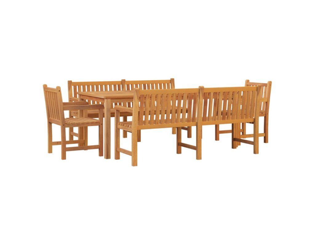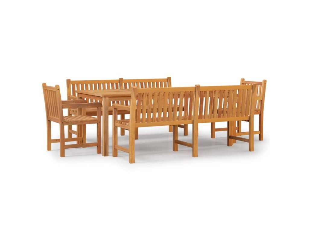 Tento dřevěný zahradní jídelní set s elegantním a moderním designem představuje skvělou volbu pro stolování nebo relaxaci na zahradě.