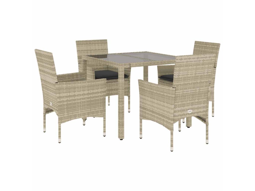 5dílný zahradní jídelní set podušky světle šedý polyratan sklo 3278574