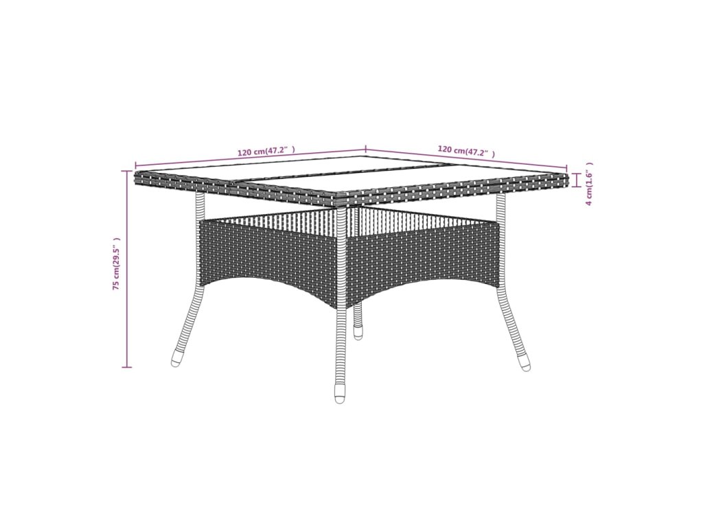 - Rozměry stolu: 120 x 120 x 75 cm (D x Š x V)