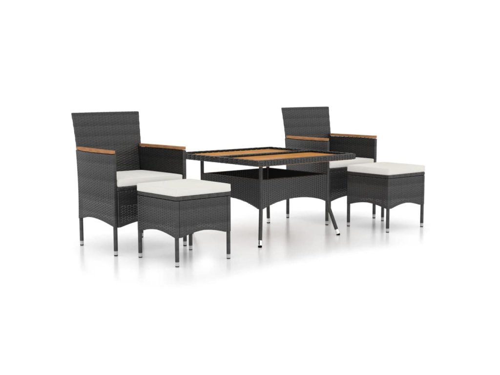 5dílný zahradní jídelní set polyratan a masivní akácie černý 3058356