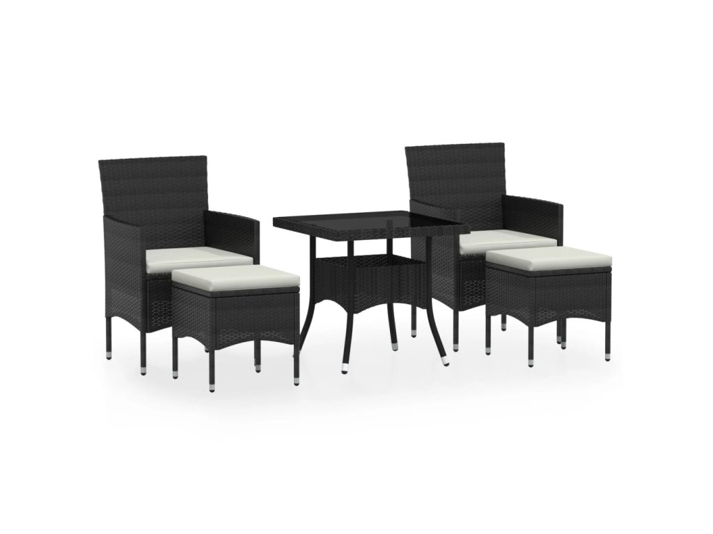 5dílný zahradní jídelní set polyratan a tvrzené sklo černý 3058328