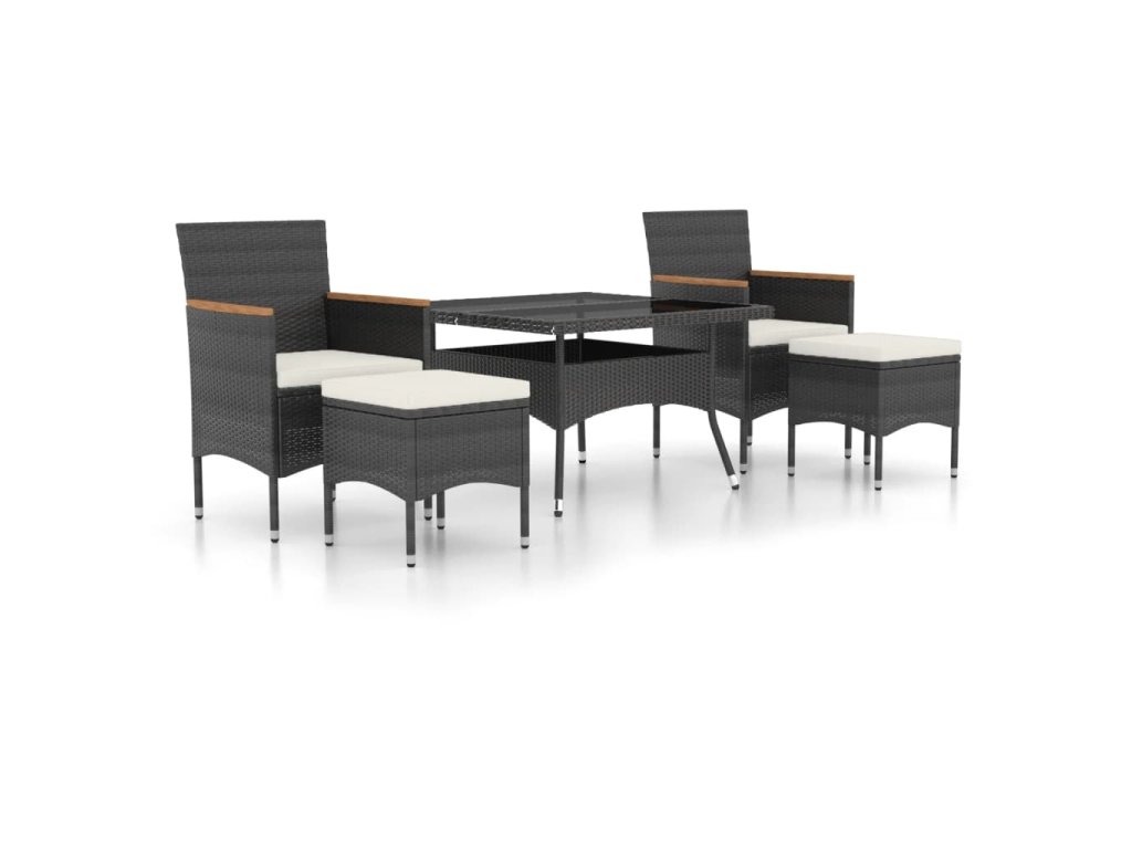 5dílný zahradní jídelní set polyratan a tvrzené sklo černý 3058354