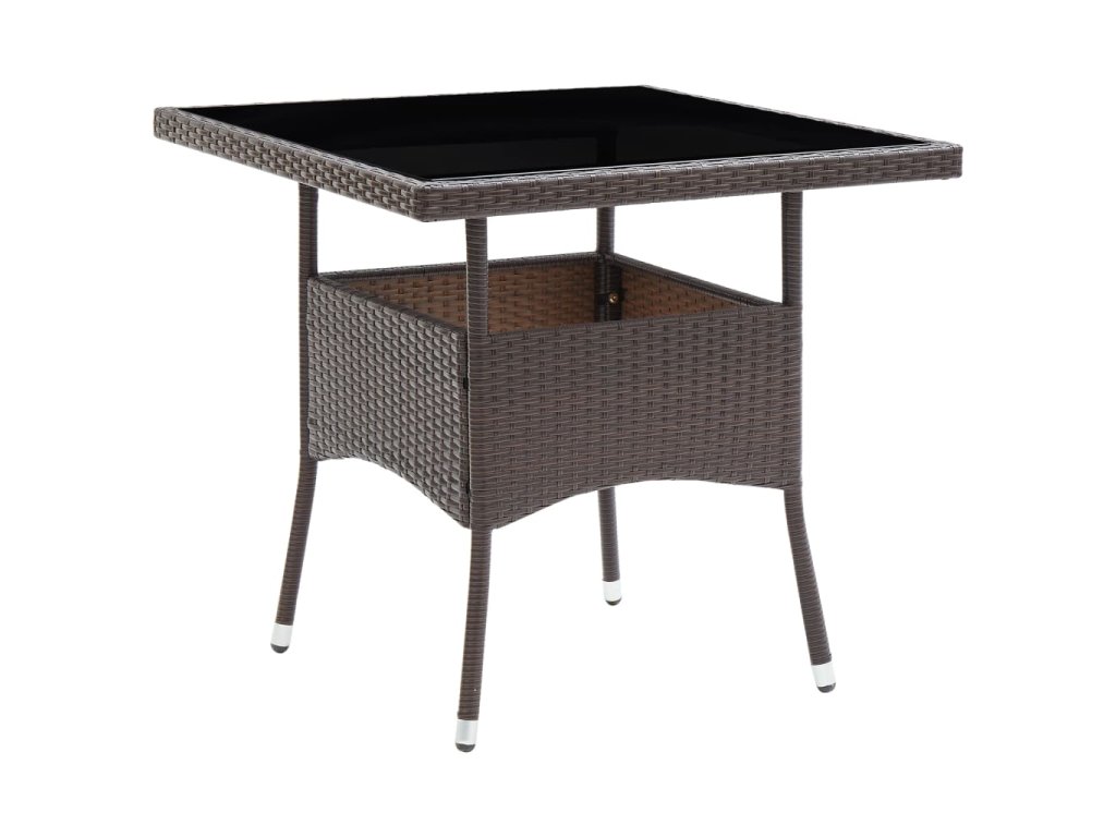 - Materiál: polyratan, práškově lakovaná ocel, textil (100% polyester), tvrzené sklo