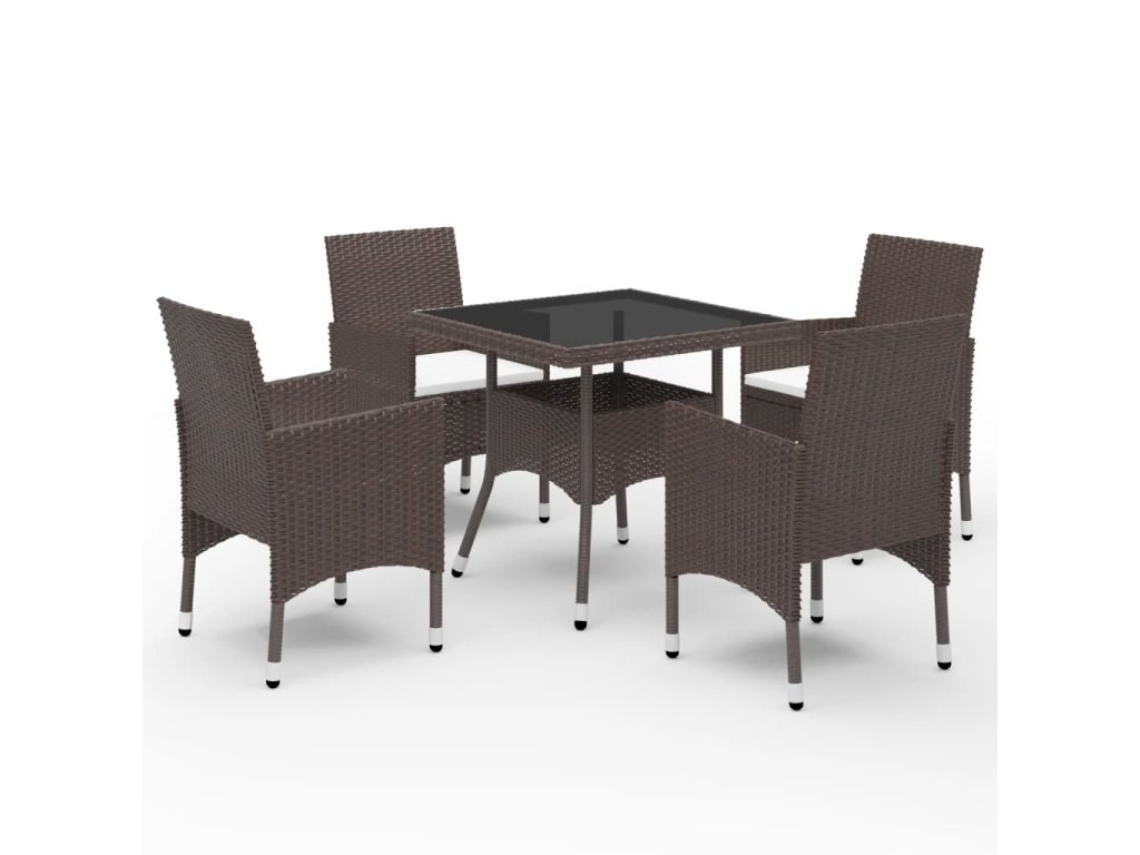 5dílný zahradní jídelní set polyratan a tvrzené sklo hnědý 3095913