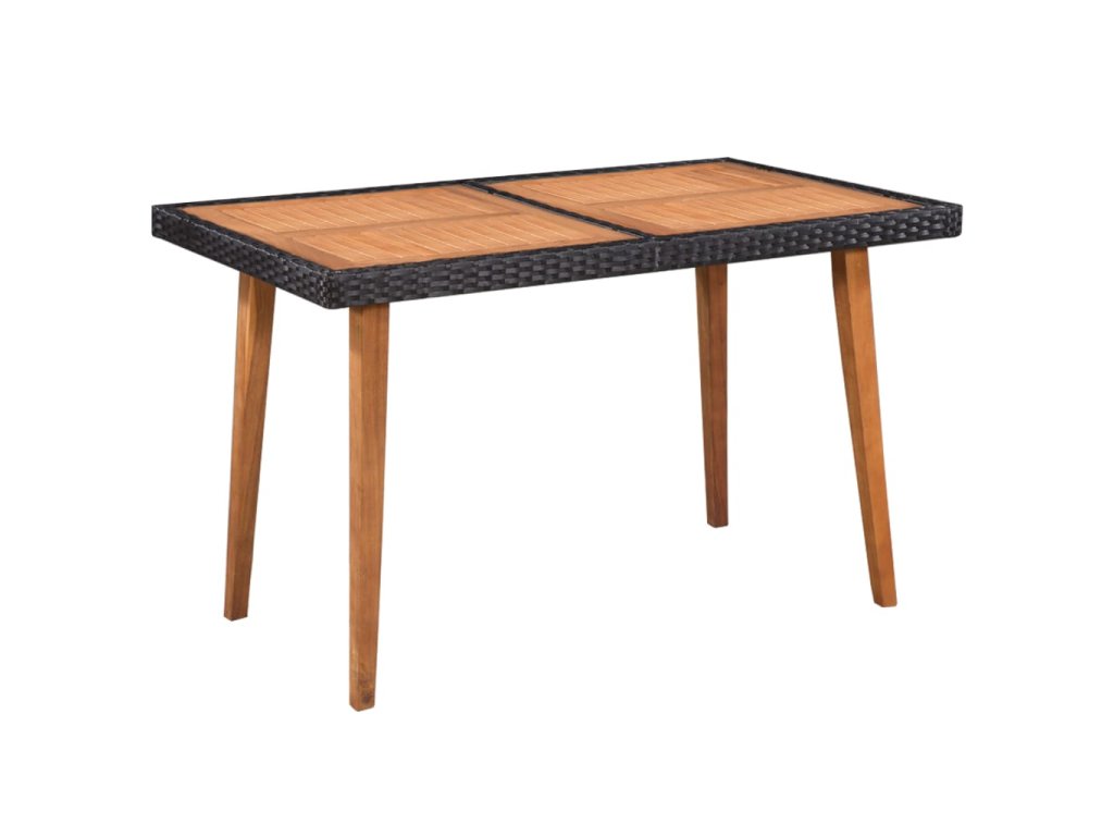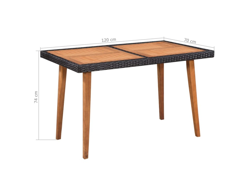 Díky polyratanovému provedení jsou sedák i opěradla židlí voděodolné a snadno se čistí. Dřevěný rám z masivní akácie zajišťuje stabilitu a odolnost sady nábytku a navíc jí dodává rustikální retro styl. Všechny položky se snadno sestavují. Balení obsahuje 1 jídelní stůl a 4 jídelní židle.