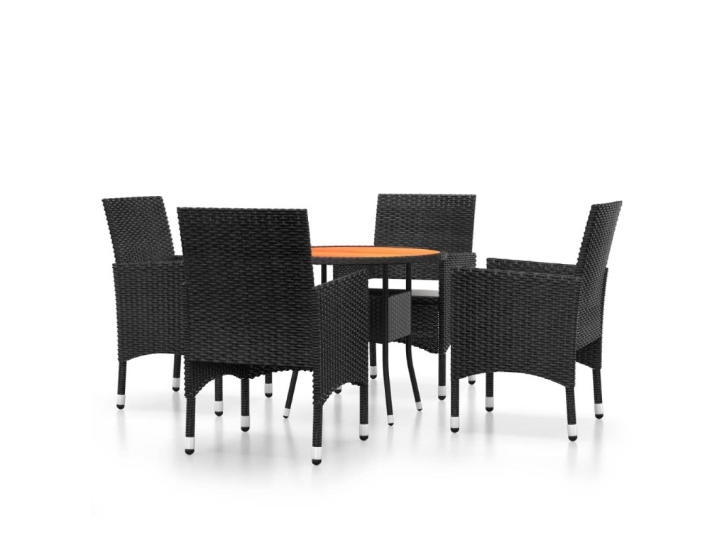 Zahradní jídelní set má práškově lakovaný ocelový rám opletený polyratanem, takže je velmi odolný. Stolní deska je zhotovená z masivního akáciového dřeva, což je tvrdé dřevo s hustou strukturou. Silně polstrované podušky vám navíc při sezení poskytnou maximální pohodlí.
