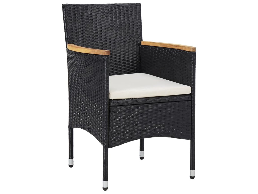 Zahradní jídelní set má práškově lakovaný ocelový rám opletený polyratanem, takže je velmi odolný. Stolní deska je zhotovená z masivního akáciového dřeva, což je tvrdé dřevo s hustou strukturou. Silně polstrované podušky vám navíc při sezení poskytnou maximální pohodlí.