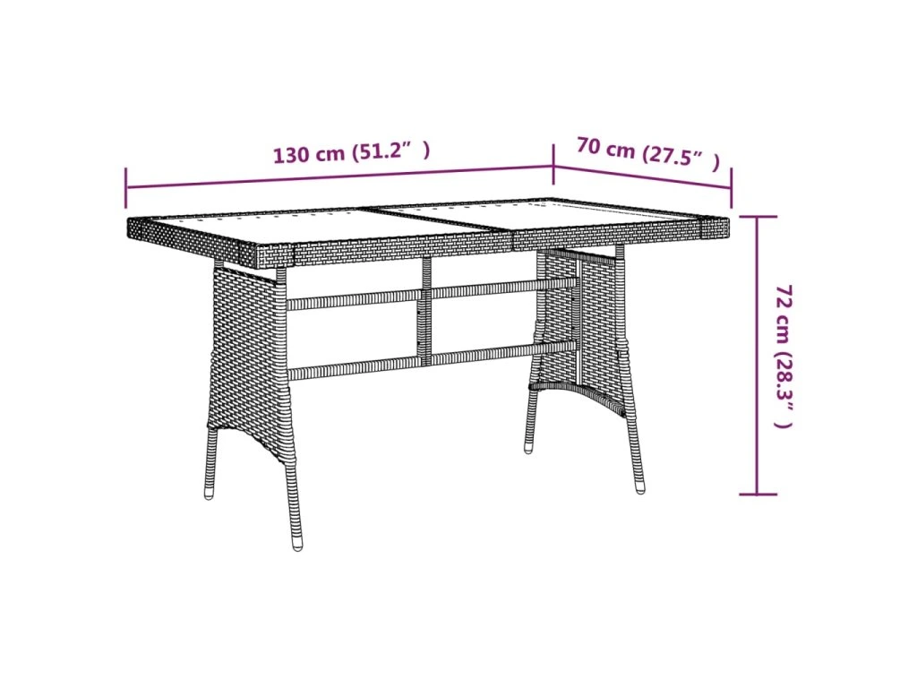 - Rozměry stolu: 130 x 70 x 72 cm (Š x H x V)
