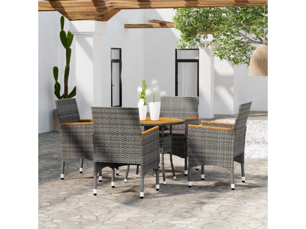5dílný zahradní jídelní set polyratan šedý 3058497