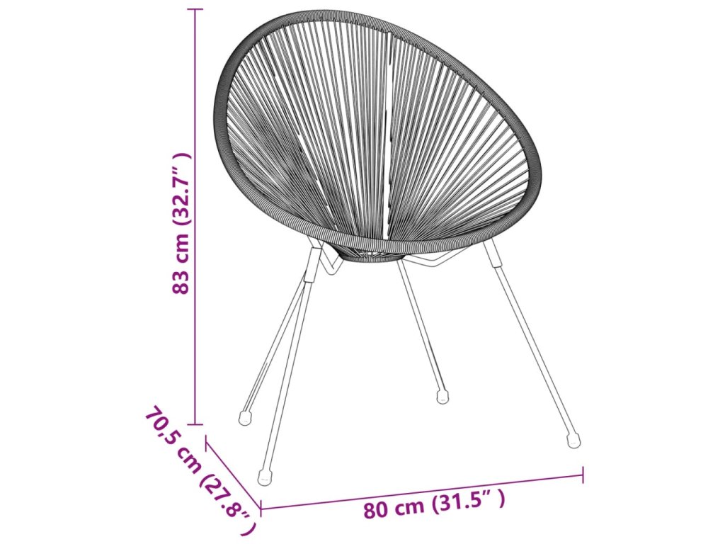 - Materiál: kulatý PVC ratan, práškově lakovaná ocel