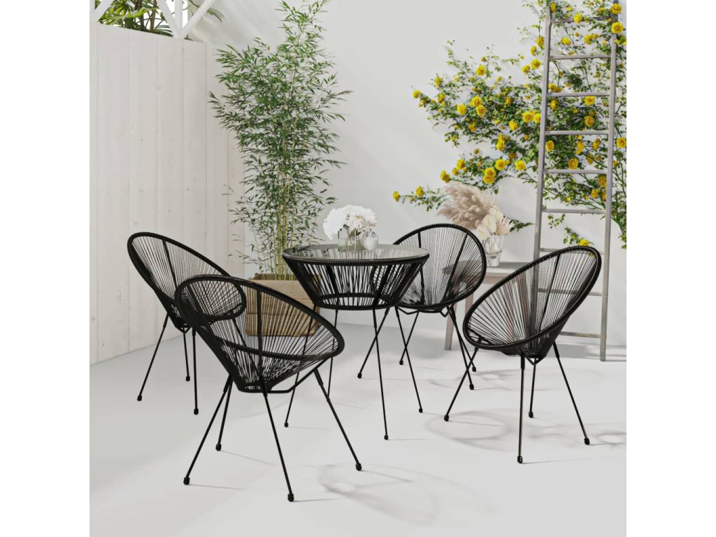5dílný zahradní jídelní set PVC ratan černý 3060280